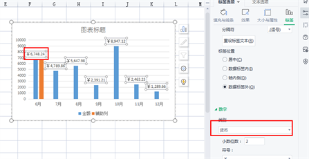 5、之后再选中数据标签,鼠标右键【设置数据标签格式】——【数字】——将类型设置为【货币】;
