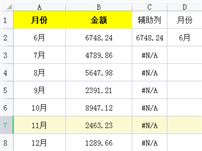 2、建立辅助列,在C2单元格中输入公式【=IF(A2=$D$2,B2,NA())】,然后向下填充;