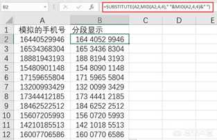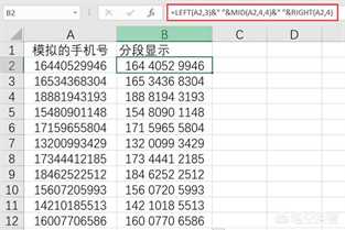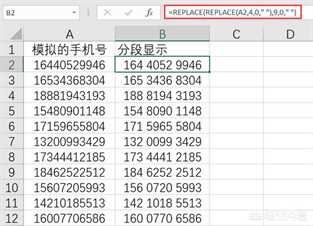 最佳答案1、技巧法这个方法对于Excel的版本有要求,必须是2013及以上版权,我们首先手动输入一个手机号,然后在下方按快捷键CTRL+E,它就能直接快速的进行填充完成,操作动图如下所示:2、使用函数法函数方法里面又分好几种方法❶使用left/mid/right函数搭配使用我们在单元格输入的公式是:=LEF......