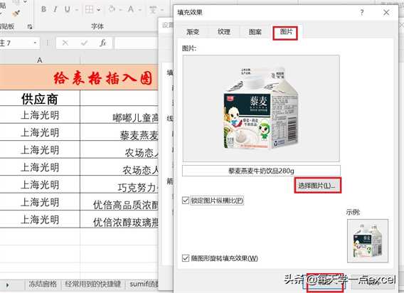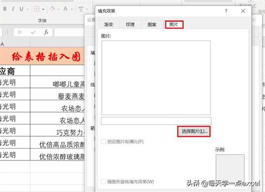 6、选择图片:填充效果菜单框中选择图片——选择图片