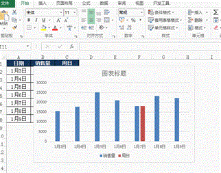 在图表中突出显示“周日”的销售量,最终完成的效果如下: