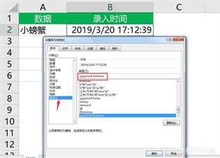 (3)选择B2单元格设置自定义格式为:yyyy/m/d h:mm:ss,然后向下填充公式。