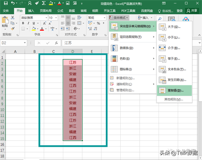可以看到,示例中的单元格区域已经全部填充为粉色,你无法知道哪些单元格内容是相同的,哪些是不同的,只能知道区域内没有唯一值的结论。