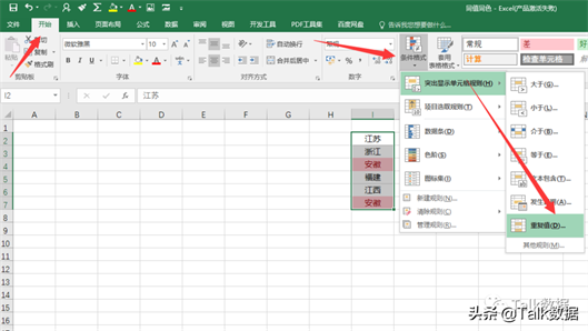 意思是,当你选择的单元格区域有很多重复值时,它的展示效果就会如下图所示: