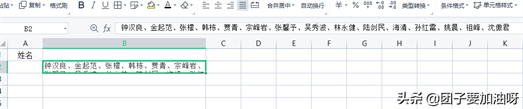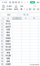 第一步:先点击Ctrl+A全选姓名,Ctrl+C全复制,将复制的信息粘贴到Excel表格里得到下图