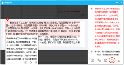 刚才说到,如果我们有一张文字的照片,不想一个一个字手敲,怎么将照片转换成可编辑的文字文档呢,就还是利用这个方法,操作起来更简单。前几步都是一样的,识别之后检查下,没问题,就直接点击第四个图标,复制粘贴到文档中就可以了。看下图标圈的地方。怎么样?