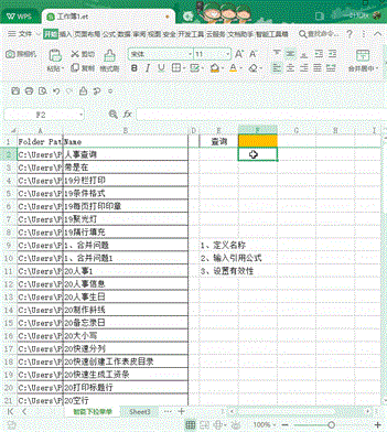 3、选则F1单元格,点击数据——点击有效性——允许下输入序列——来源输入引用公式即可达到开头动画效果了!