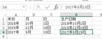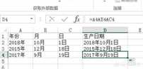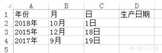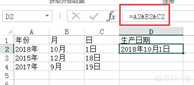 如下图:要把A列(年份)、B列(月)、C列(日)的数据合并在一起显示在D列(生产日期) 。