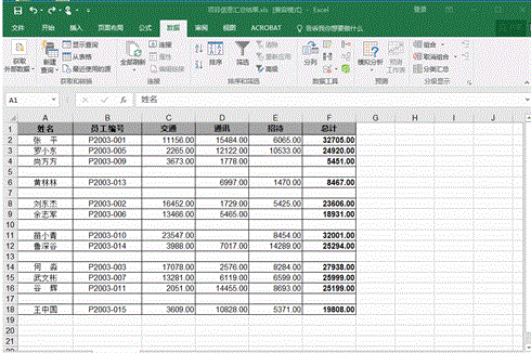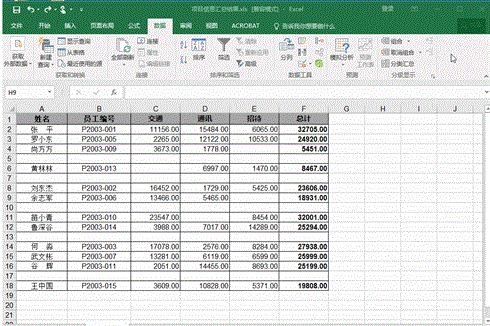 2、选中包括辅助列的所有区域中的数据单元格,用“排序删除法”删除空行。