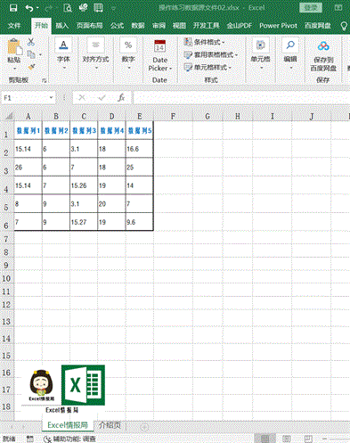 情景2:数据呈现纵向显示,有5列数据,我们想要实现批量使单独的每列数据中的重复值高度显示。