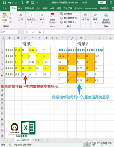 我们该如何实现这两种情景下的每行(或每列)重复值数据的高亮显示呢?
