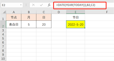 最佳答案第一步:在工作表中记录节日的日期。这里分享一个date函数语法结构:DATE(year,month,day)例子:date(2022,5,20),返回出来的值就是2022-5-20我记录的方法是先记录月份和日期,用date函数和year函数组合起来,就可以得到今年这个节日的【年月日】,这样是为了方便......
