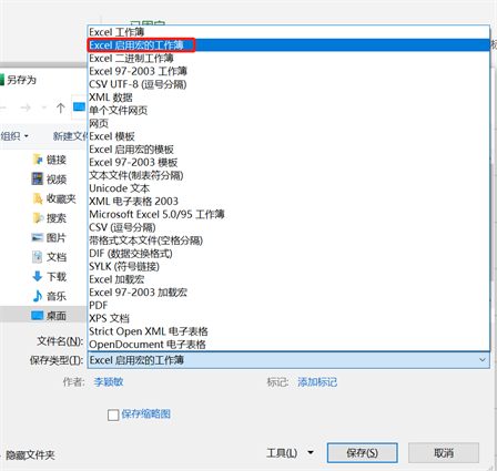PS:这里来个个小提示,在保存Excel时,弹出一个窗口,点击【否】,保存类型选择“Excel启用宏的工作簿”,即可保存。