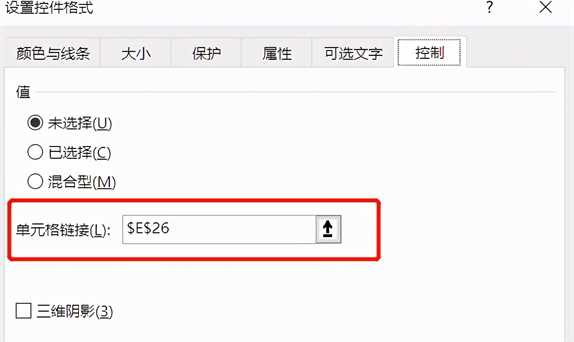 5,鼠标右键其中一个复选框,然后设置控件格式,选择其中一个单元格链接(随意一个单元格就可以),建议放在复选框旁边。