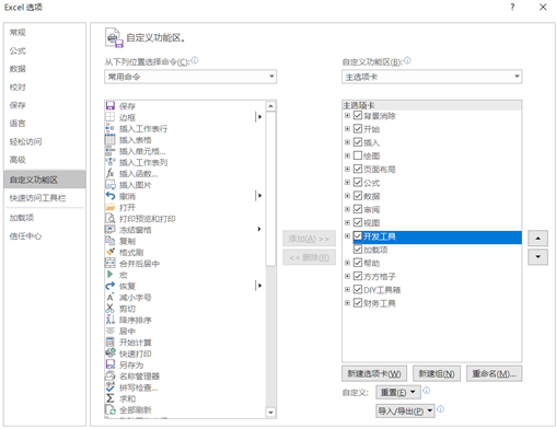 鼠标右键菜单栏,选择【自定义功能区】,在选项当中,勾选上【开发工具】选项,点击确认,即可添加到菜单栏当中。