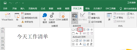 2,我们点击菜单栏上的【开发工具】选项卡,然后选择表单控件下面的复选框,绘制出来。
