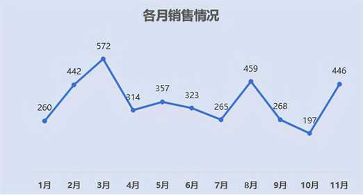 想知道这个图表的销售额最好的月和最差的月,我们需要去对比才能看出,无法以比较显眼的方式直接看出来,我们如果按照下面的图表来展示,信息没有新增,但是可以更容易让我们的领导和同事去阅读。