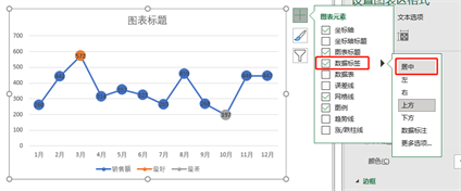 然后我们选择数据标签-居中,到这里表格的基础已经完成。