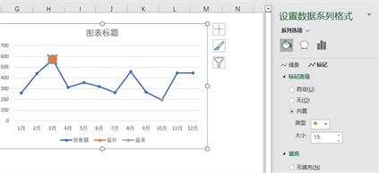 然后点橙色的点-填充与线条-标记-标记选项-内置,大小设置为15: