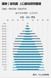 说明:既有性别维度,又有年龄维度,多维度呈现出对比状态,并且直观的呈现出人口老年化的一个趋势状态
