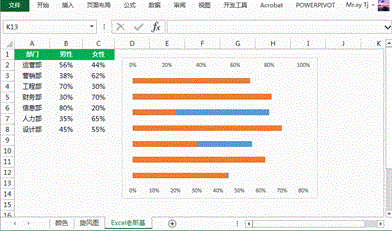举个例子,如果数据最大的不超过80%,则画条形图的时候,是从0%到80%的一个过程,如果要让0%居中,则正方向上已经有80%,那对称一面,一定是-80%