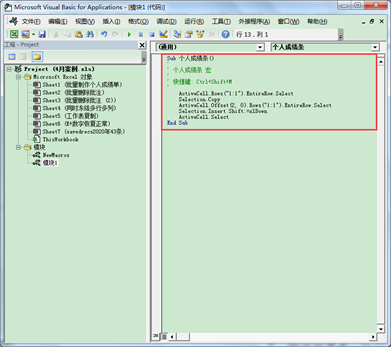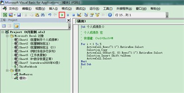 7 在打开的“Microsoft Visual Basic for Applications”窗口中,鼠标双击左侧列表中的“模块1”,即可在右侧看到我们刚刚录制好的宏“个人成绩单”。