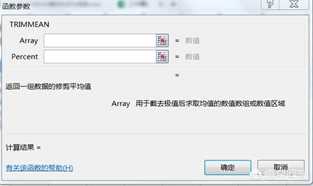 TRIMMEAN函数用于截去极值(最大值和最小值)后数值数组(一般为单元格区域引用)求平均值。其包含2个参数,第一个为Array,即是单元格区域引用;第二个参数为Percent,即是截去的极值个数占单元格区域引用中数值个数的百分比。