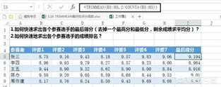 例如本例中要求出参赛选手的最后得分,我们可以使用如下公式: