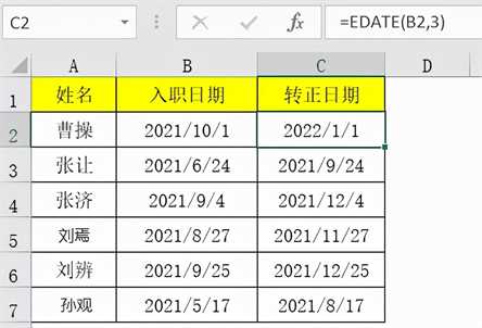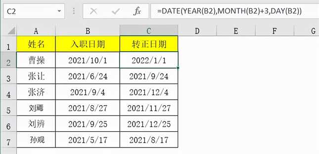公式:=DATE(YEAR(B2),MONTH(B2)+3,DAY(B2))