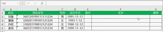 说明:MID(B2,7,4):提取第7位数开始的4位数字,即出生年份YEAR(NOW()):计算当前日期的年份(YEAR(NOW())-MID(B2,7,4)):虚岁=当前年份-出生年份