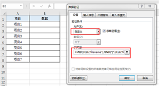 最佳答案操作方法如下图所示,选择需要填写数据区域——数据——数据验证——允许:自定义——公式中输入:=MID(CELL(“filename”),FIND(“[“,CELL(“filename”))+1,FIND(“]R......