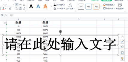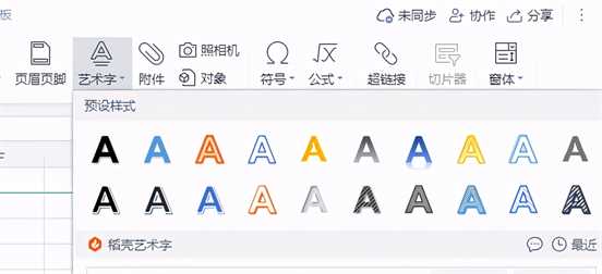 选择表格中任一单元格,在【插入】中选择【艺术字】,然后选择一种“预设样式”,输入需要添加的文字;