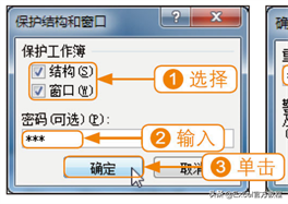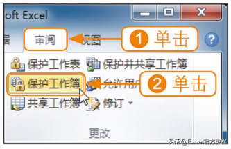 最佳答案详细设置方法和步骤:步骤01 ①单击“审阅”选项卡;②在“更改”工具组中单击“保护工作簿”按钮,如下图所示。 步骤02 在“保护结构和窗口”对话框中①根据需要选择“保护工作簿”选项组中的“结构”和“窗口”复选框;②在“密码”文本框中输入密码;③单击“确定”按钮,如下图所示; ④弹......