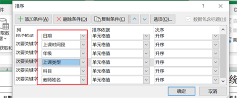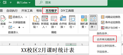 ③选中需要排序的区域,运用高级排序功能,对有合并单元格的列依次排序。