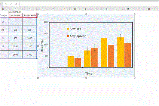 Time(h) | Amylose | Amylopectin | Amylose偏差范围 | Amylopectin范围 |