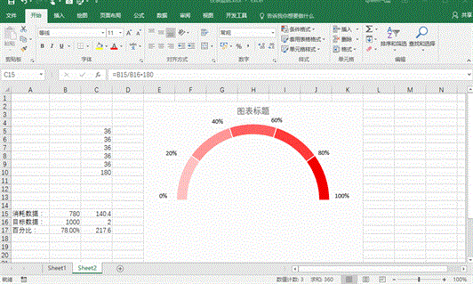 首先建议如下A15:B17区域,780表示实际使用数据,1000为目标数据,B17为所在百分比。