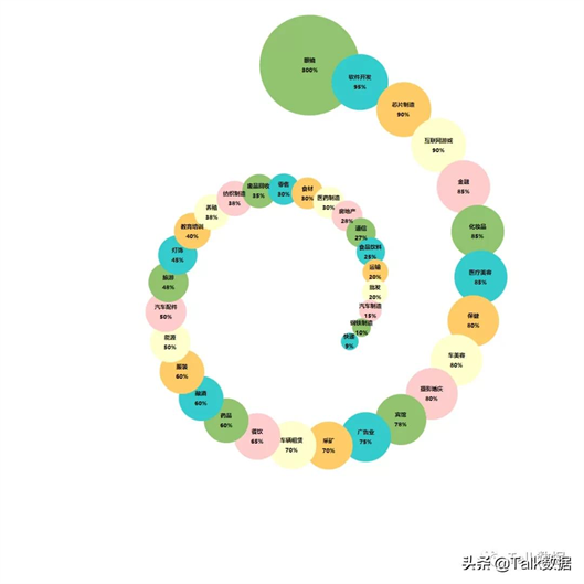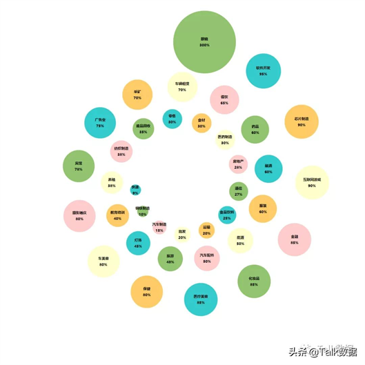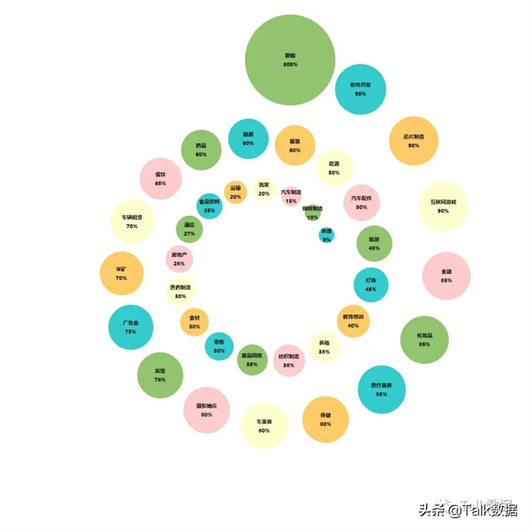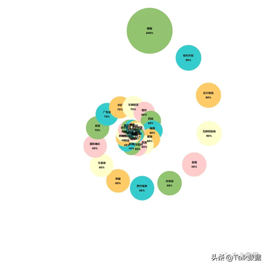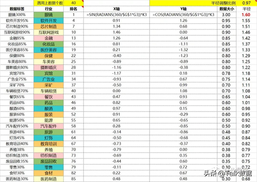 圆周上数据个数写了40,也可以写50/80,它并不真正代表行业个数,简单的说也是为了调整气泡的间距。