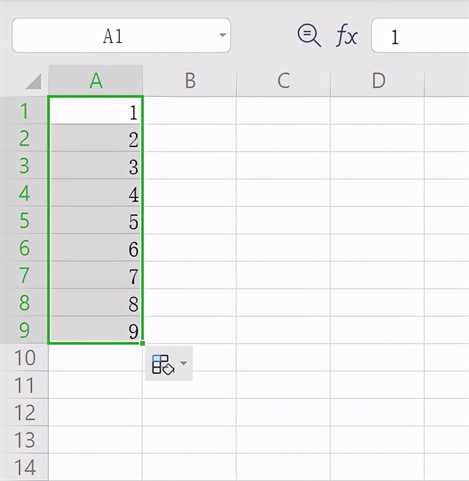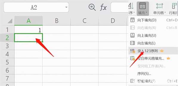 4、如果以上两个都无法成功下拉递增数字,还可以点击下放一格,然后将填充的方式改为“序列123填充”。