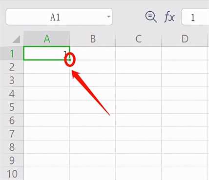 2、再选中该单元格,将鼠标移至单元格的右下角,可以看到当鼠标演变成一个填充柄即“ ”号的图标时候进行下拉。
