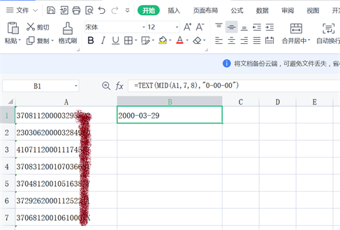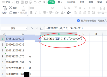 一、首先通过公式=TEXT(MID(A1,7,8),”0-00-00″),提取出来生日。