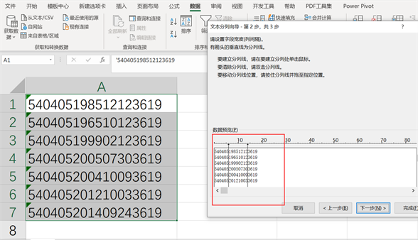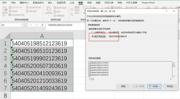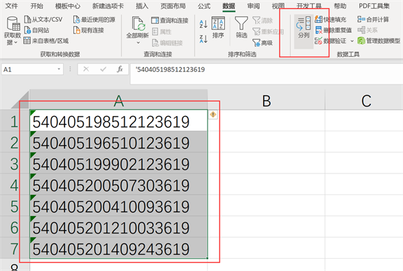 选中A列的身份证号码,点击菜单栏上“数据-分列”。