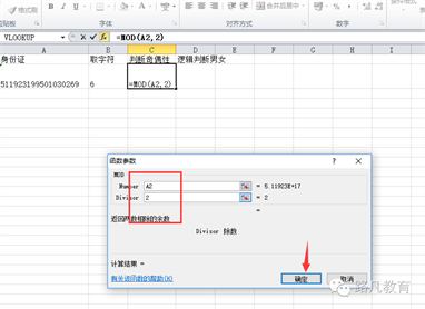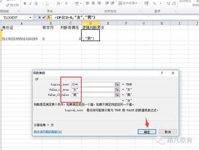 用if()函数。如果上一步的函数结果为0,那么就代表偶数,相应就代表女性,对吧,反之亦然。