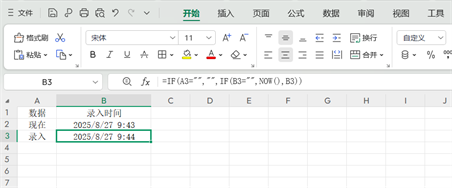 适用于仅需记录数据首次录入时间、后续无需频繁修改的场景,操作简单。