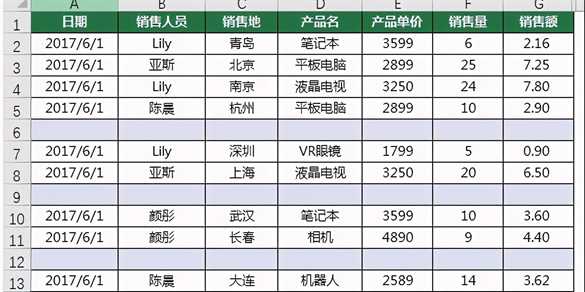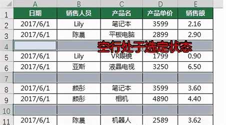 如图所示,数据表中有冗余的空行。我们需要删除这些空行。