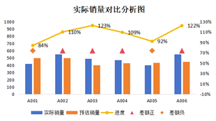 最佳答案一、数据源准备1.整理好制作图表所需的数据源,A-E列是基础数据源。其中D列的“差额”,需通过“实际值-预算值”的计算公式得出;“进度”则需用“实际值÷预算值”的公式计算获取。2.F列“差额正”和G列“差额负”,是依据D列差额的正负属性进行数据拆分得到的,差额为正数的归入“差额正”,差额为负数的归入......