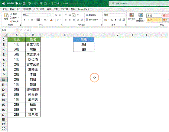 比如在这里,我们想要找到2班与1班对应的所有姓名,首先需要构建下查找的条件,就是班级这个表格,随后将【筛选方式】设置为在新的区域显示结果,只需将【列表区域】设置为筛选的数据区域,然后将【条件区域】设置为班级,【复制到】设置为一个单元格,然后点击确定即可