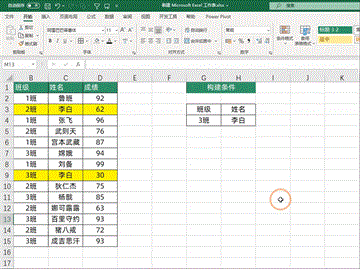比如在这里我们将【班级】设置为3班,【姓名】设置为李白,来设置2个筛选条件,看看不能找到它对应的数据
