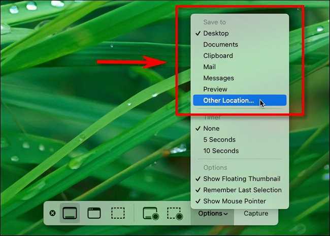 您可以使用相同的菜单为将来的屏幕截图选择不同的保存位置。如果您不再位于屏幕截图菜单中,请按 Shift Command 5,单击“选项”,然后从列表中选择“保存到”位置。要选择自定义文件夹,请选择“其他位置”。下次您截取屏幕截图时,您会在此处找到屏幕截图文件。