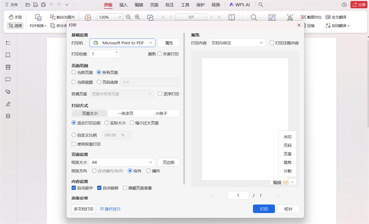在「页面设置」中,可以根据实际需求调整纸张的尺寸(如A4、A3等)、打印方向(横向或纵向)以及页边距大小;「内容设置」里的自动居中、自动旋转功能能让内容呈现更规整,若文档背景带有不必要的图案或颜色,勾选“隐藏页面背景”就能避免多余打印。