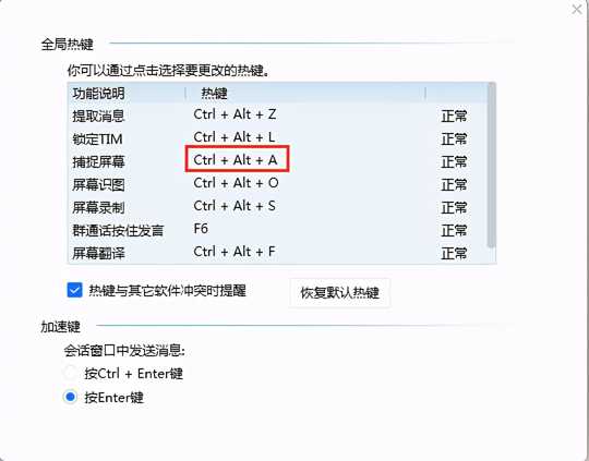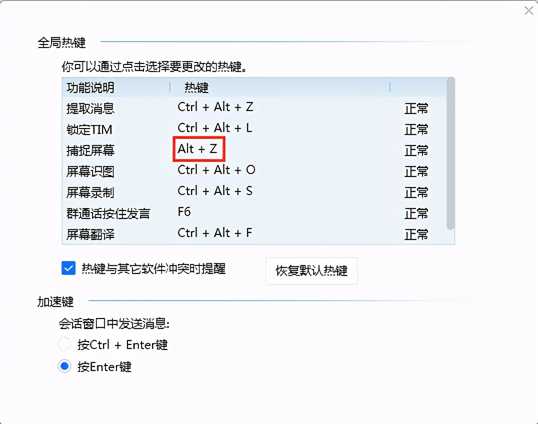 3.在打开的对话框中,找到“捕捉屏幕”的热键(即快捷键)Ctrl+Alt+A,单击鼠标可将光标定位在热键编辑框中,直接在键盘上按新按键即可更改截屏快捷键,这里同时按Alt+Z组合键。最后,单击对话框右上角的“×”按钮关闭对话框。